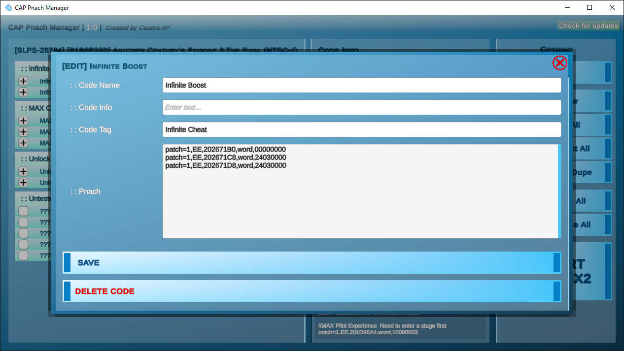 - Launch the application "CAP Pnach Manager\CAP Pnach Manager.exe".