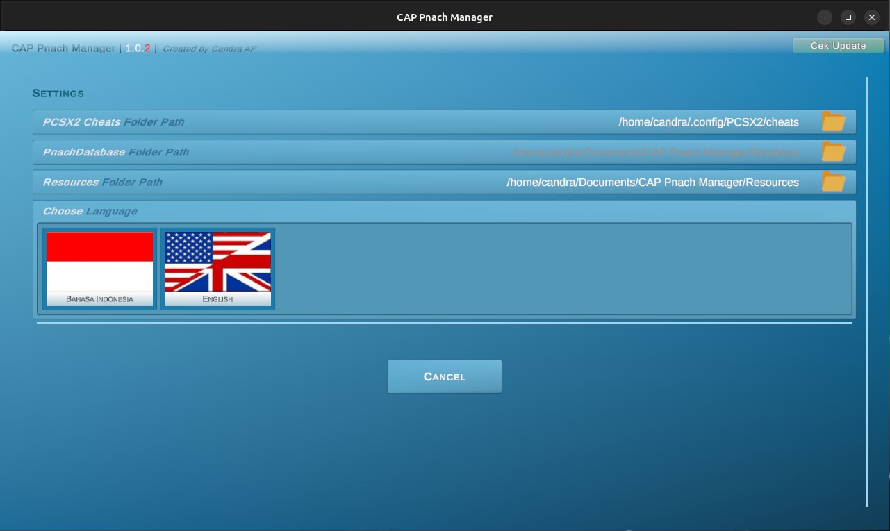 - Extract "CAP_Pnach_Manager_Data.7z" to any folder or put "Database" & "Resources" folder inside "CAP Pnach Manager" folder.